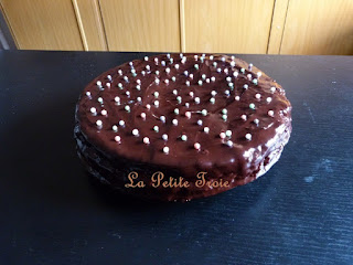 Tarta de chocolate con crema pastelera y batido de moras